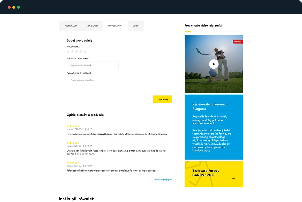 Wielu z nas jest podatnych na opinie innych konsumentów, ponadto szukamy potwierdzenia słuszności naszego wyboru u kupujących taki sam produkt. Dlatego wyświetlanie opinii o danym produkcie znacznie zwiększa jego atrakcyjność, a co za tym idzie - także sprzedaż.
