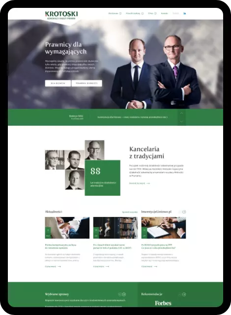 Tworząc indywidualny projekt, bierzemy pod uwagę nie tylko aktualne trendy, ale też uwzględniamy specyfikę branży prawniczej.